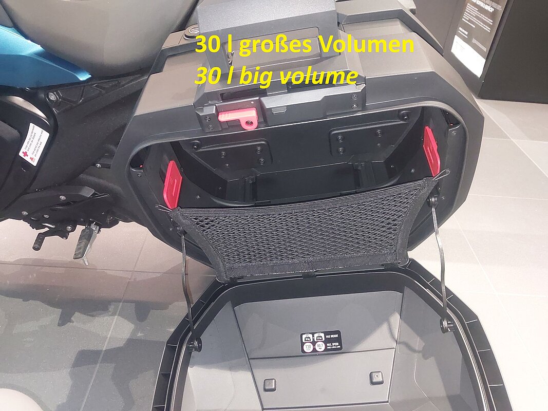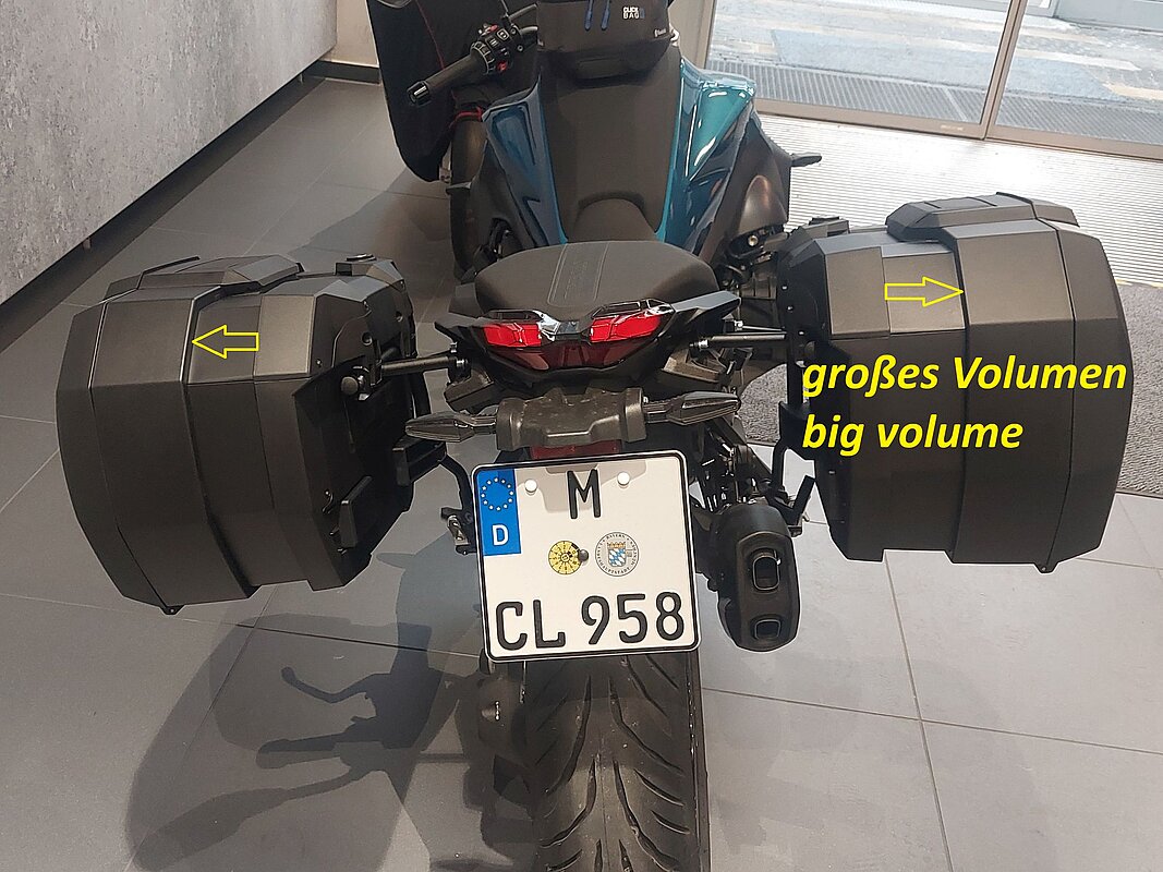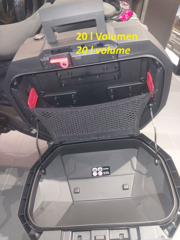 As luggage system we do offer the very solid and easy to use Wunderlich panniers. The can be extended with very easy handles from 20 liter volume (each bag) to 30 l volume each. Just see the fotos we show at this page.